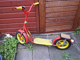 In begin jaren 90 leidde een Finse student hiervan de kickbike af, maar dan zonder de bekende kleine wielen. Hij werd lichter en er kwamen grotere wielen onder. Inmiddels is het een wedstrijdsport en worden er diverse wedstrijden georganiseerd, zo ook een NK en EK.