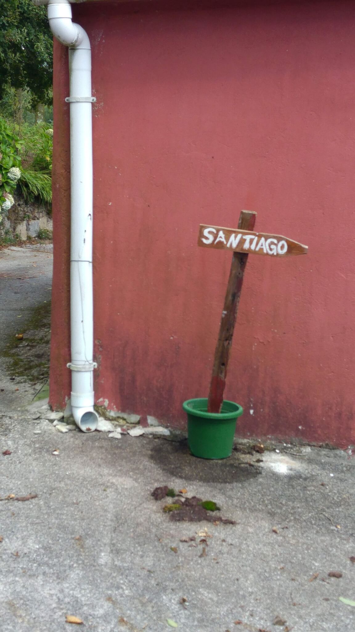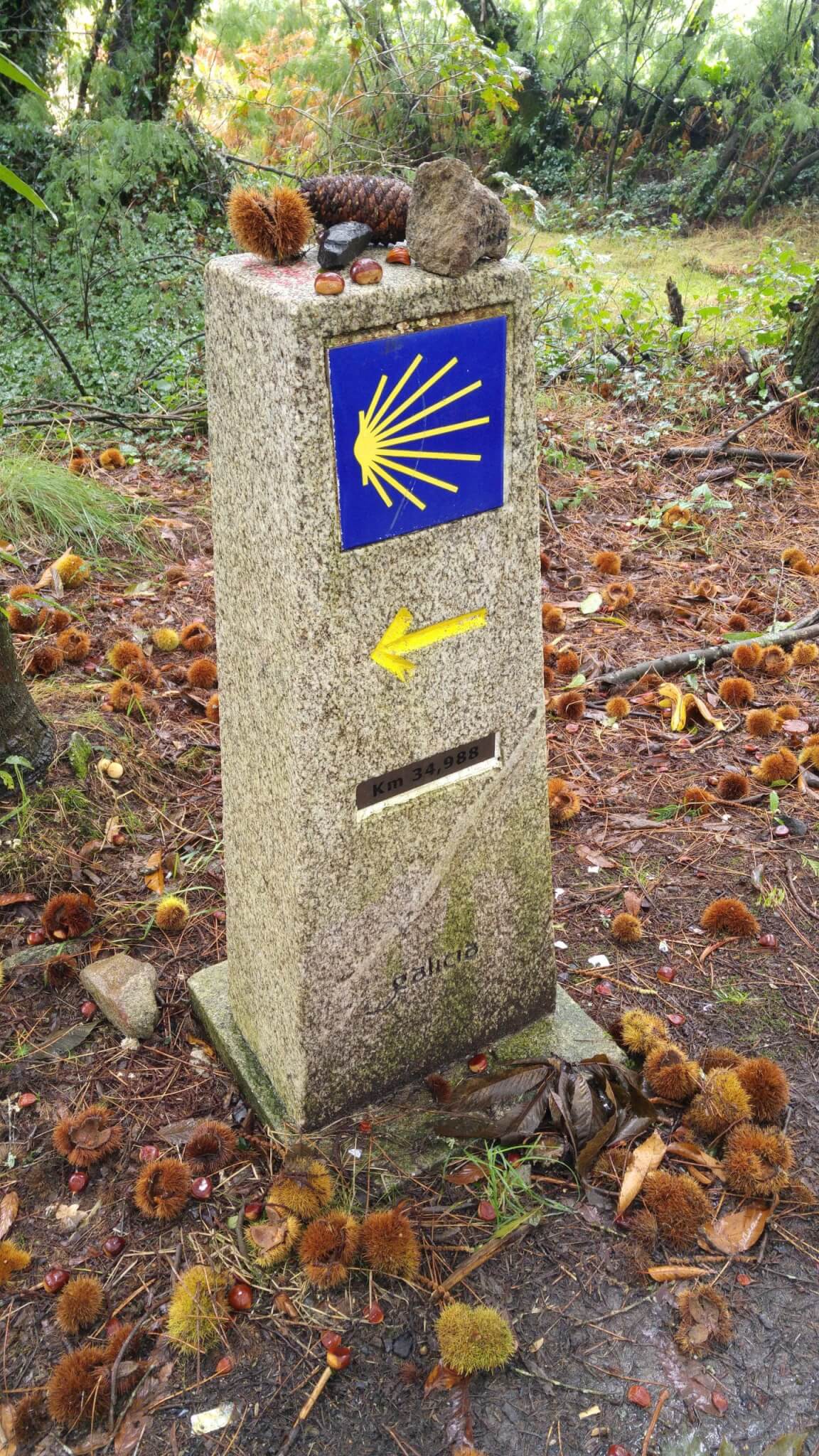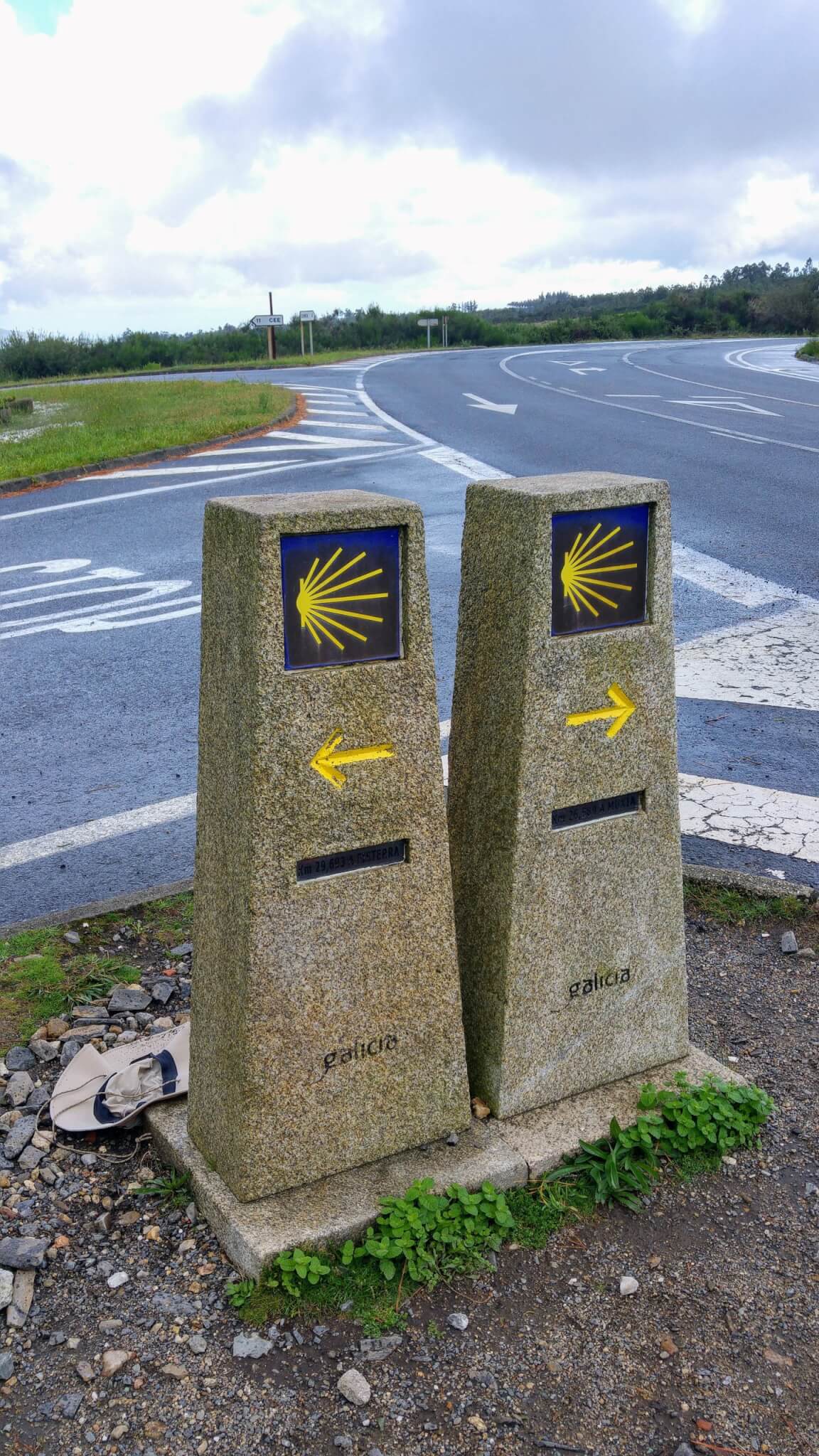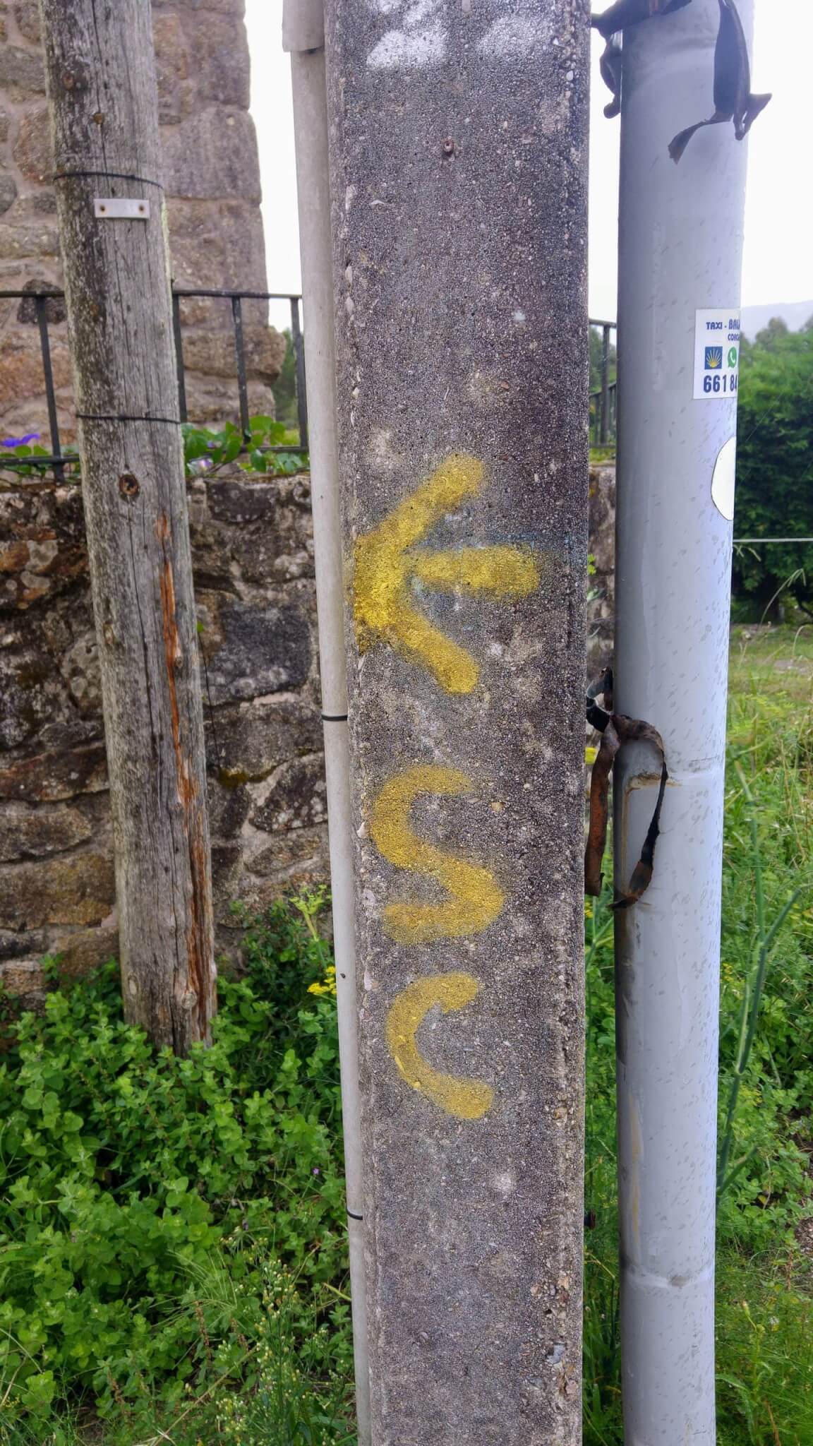 Ja, de routes naar Santiago de Compostela zijn gemarkeerd met speciale pijlen en andere markeringen. Standaard zijn de markeringen blauwgeel, maar je komt ook handgemaakte aanwijzingen tegen. Zie deze voorbeelden.
