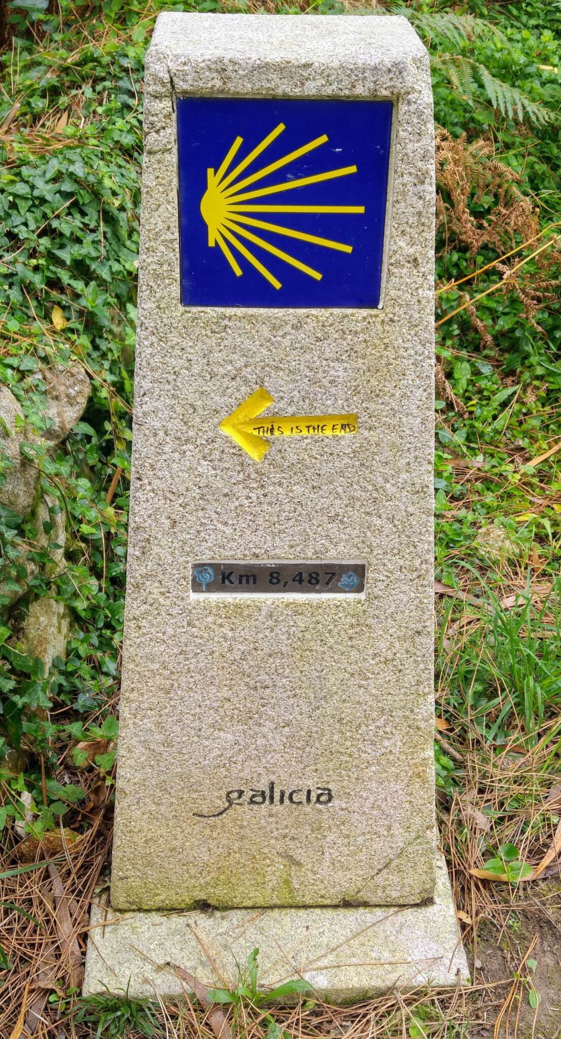 Ja, de routes naar Santiago de Compostela zijn gemarkeerd met speciale pijlen en andere markeringen. Standaard zijn de markeringen blauwgeel, maar je komt ook handgemaakte aanwijzingen tegen. Zie deze voorbeelden.
