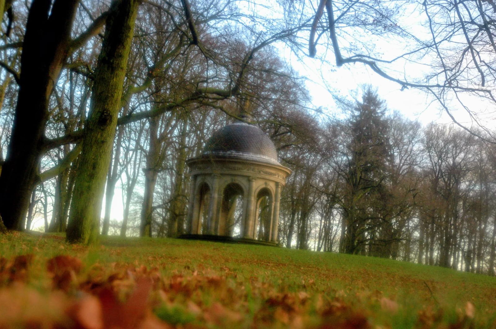 De familie, die eigenaar was van het landgoed, liet vlak bij hun villa een vijver graven. De villa is er niet meer; die is in 1939 door brand verwoest. Het theehuis en de vijver zijn er nog steeds. Het werd een grote vijver met in het midden een eiland. Van de grond die overbleef, maakten ze een grote wal naast de vijver. In die wal maakte ze drie tunnels.