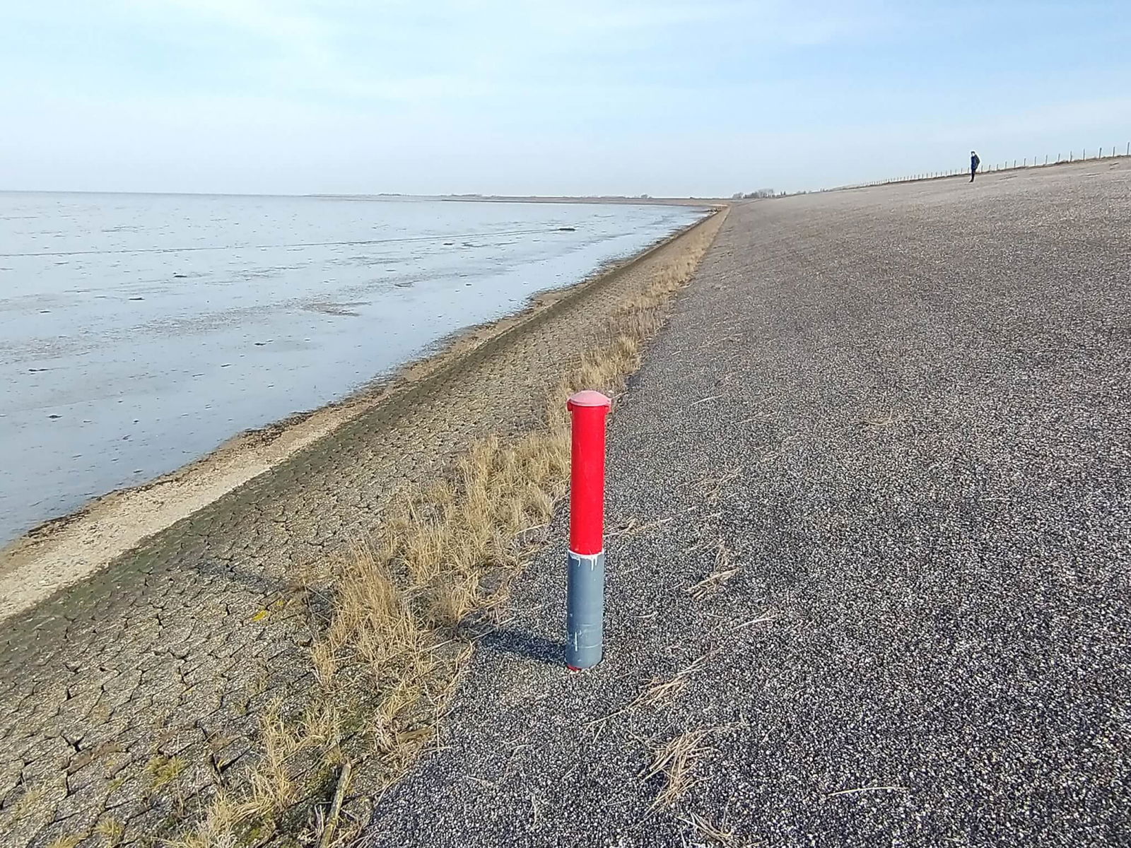 De gelaagde wierpakketten zijn aan de zeezijde in het dijktalud goed te zien.