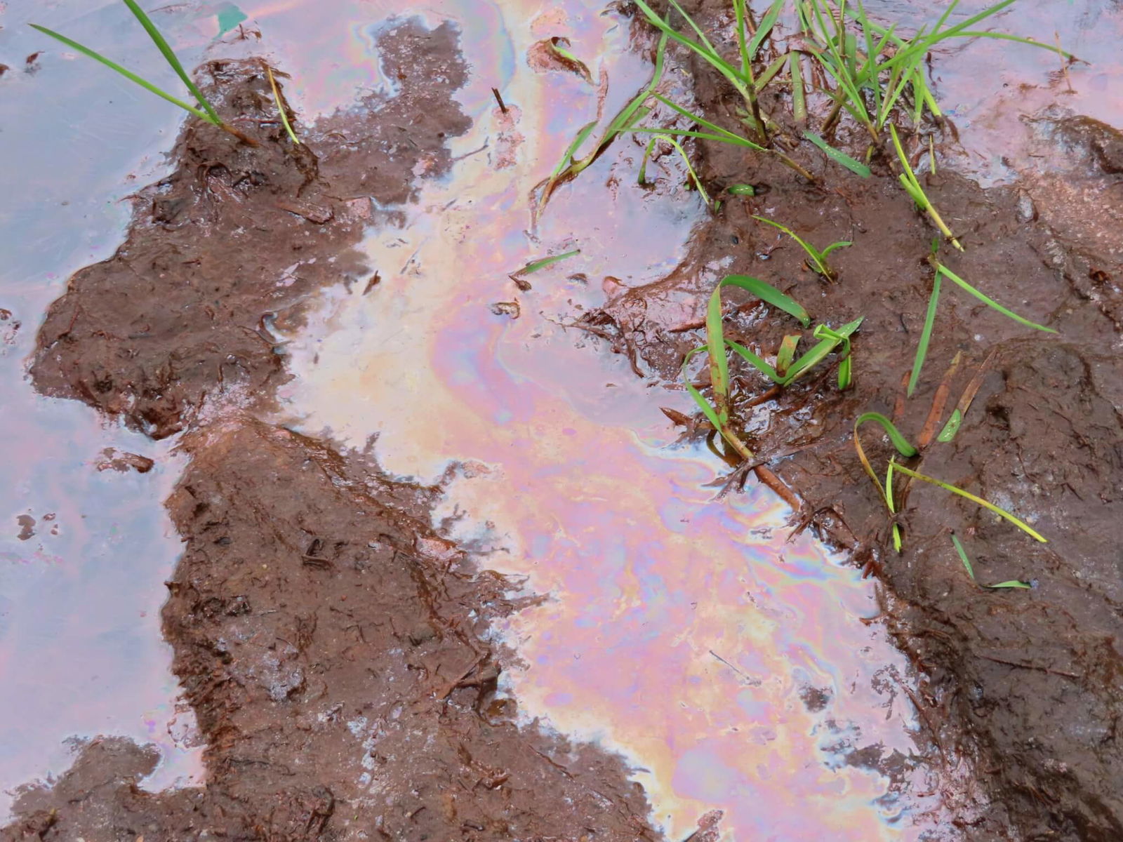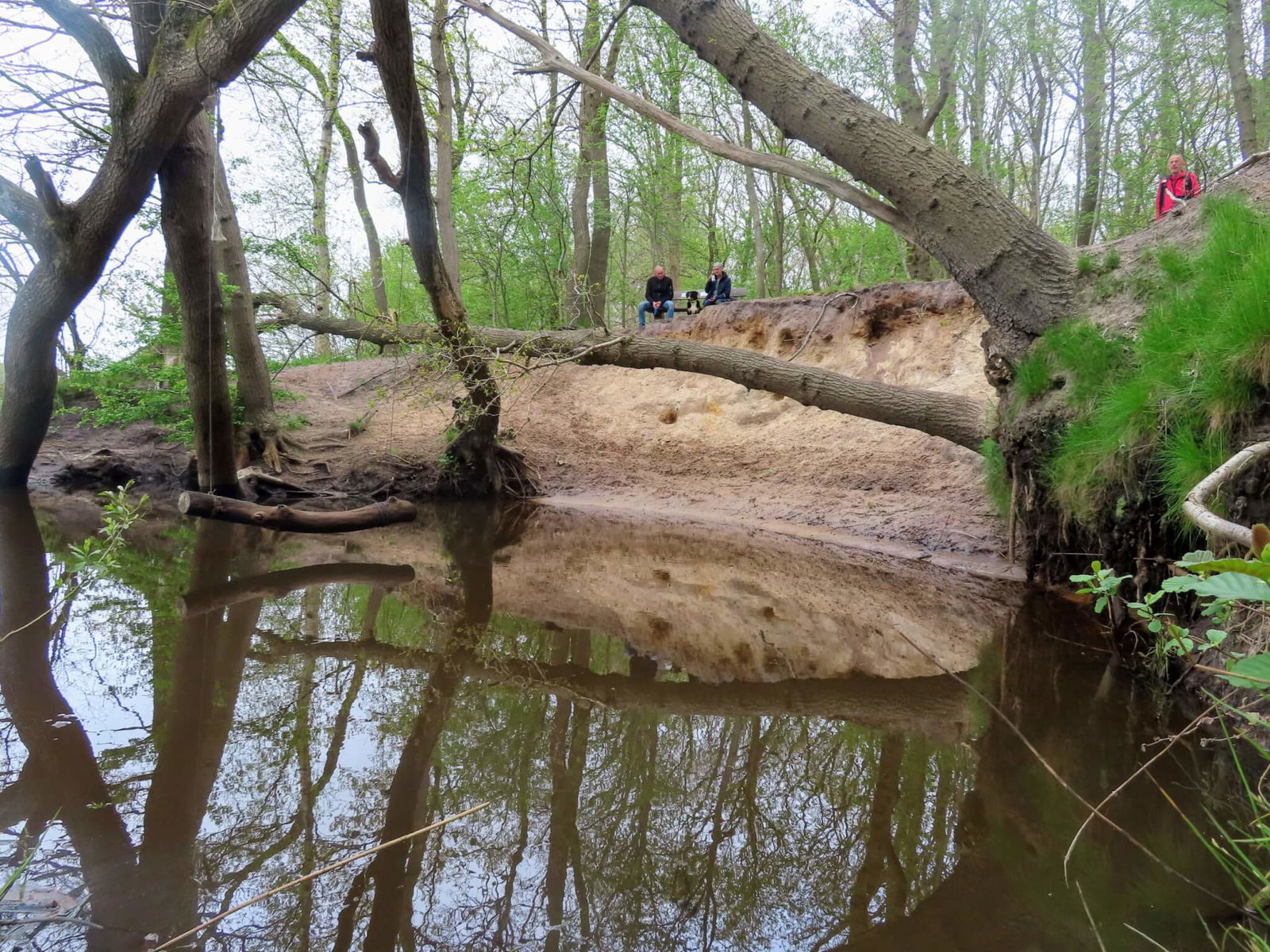 Op sommige plassen langs het wandelpad lijkt het wel alsof er olie op het water drijft. Er is iets anders aan de hand: het gaat om ijzerrijk kwelwater dat hier naar boven komt en gaat roesten zodra het in aanraking komt met zuurstof. Bij dit roestige water zie je soms ook een vliesje. Dat vliesje komt door bacteriën die zich hier prima vermaken.