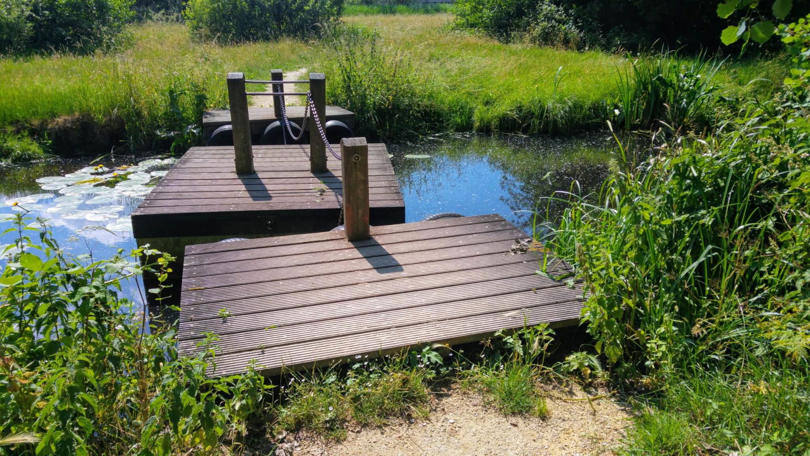 Gelukkig is de onbewaakte spoorwegovergang dicht want daardoor komt je langs de Fuutenlei; een woonhuis ter hoogte van de spoortunnel. Zij hebben sinds enkele weken op za. + zo. (bij mooi weer) hun terras aan het water opengesteld en hebben een uitgebreide kaart! Een toplokatie voor een heerlijke pauze. -