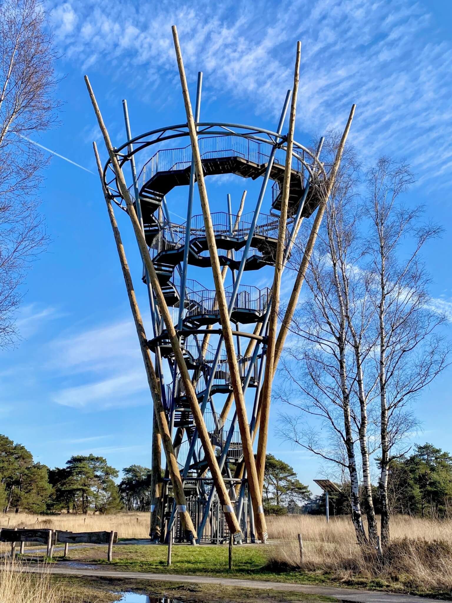 Uniek is de uitkijktoren bij de Flaes, gebouwd in 2011. Wat mij betreft is dit een van de mooiste uitzichtpunten van Nederland. De 24 meter hoge toren is gemaakt met 8 bomen uit het landgoed zelf, versterkt met een stalen constructie. Bij mooi weer kun je tot in België kijken!